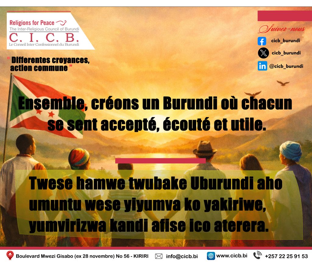 Construisons un Burundi où la solidarité dépasse les différences, où chacun se sent accepté, écouté et utile L’unité n’est pas un rêve. C’est une décision que nous prenons chaque jour. 🤝 Le changement commence avec nous.